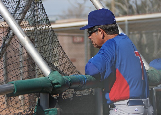 Great to see Kerry Wood showing fellow Texas native Andrew Cashner a few pointers on baseball grip techniques. Their conversation lasted only a minute or two and happened as they were moving from one field to another, it was one of those subtle things that often get missed if you’re not in the right spot to see it. Wood is a team leader and in spite of his unfortunate injury history, there’s a lot he can show the younger players.