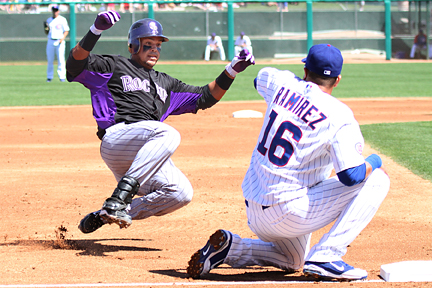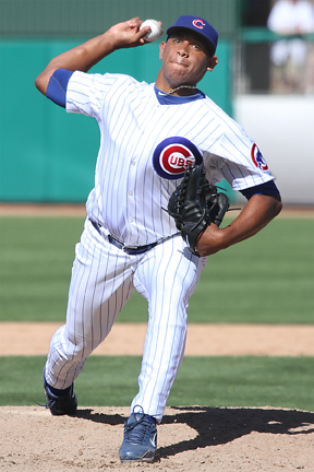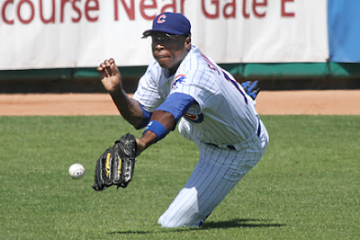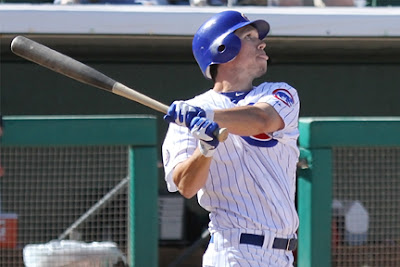 It is interesting to note that Cubs minor leaguers Brett Jackson and Bryan LaHair started today’s game but instead of their usual jerseys and numbers they ended up with numbers 85 and 95 respectively. This was due to their uniforms already being shipped out of AZ. Alfonso Soriano struggled in the outfield, so much so that he received some boos after one of his defensive efforts and again when he stepped to the plate later. It should be noted that he did have an outfield assist throwing out at third base.